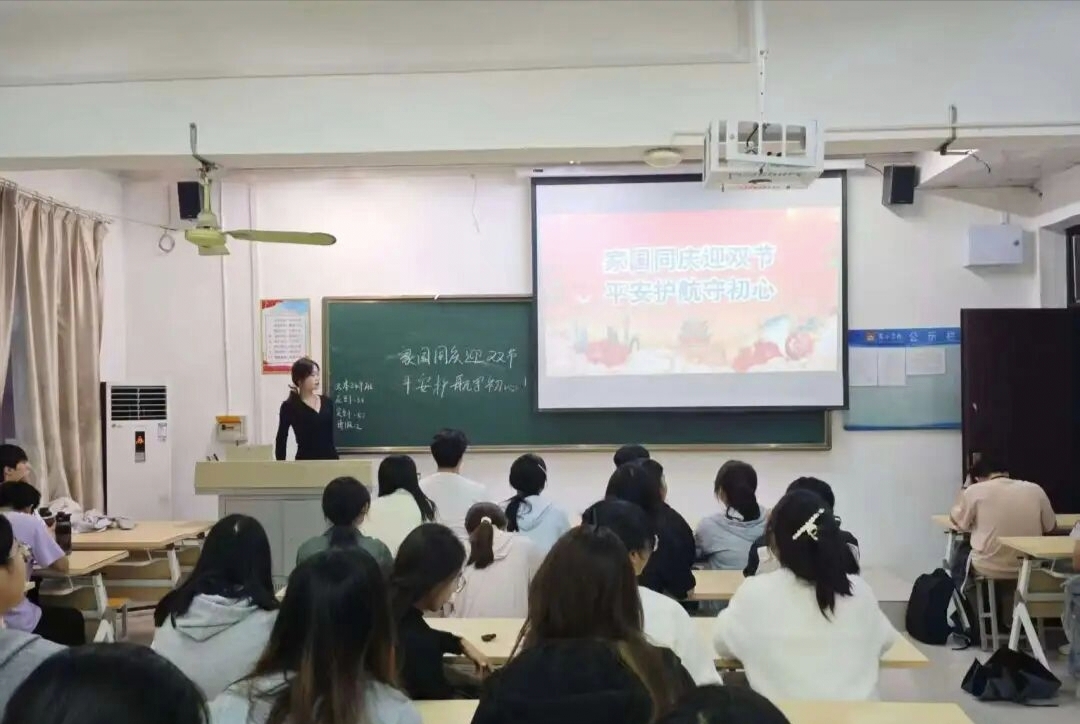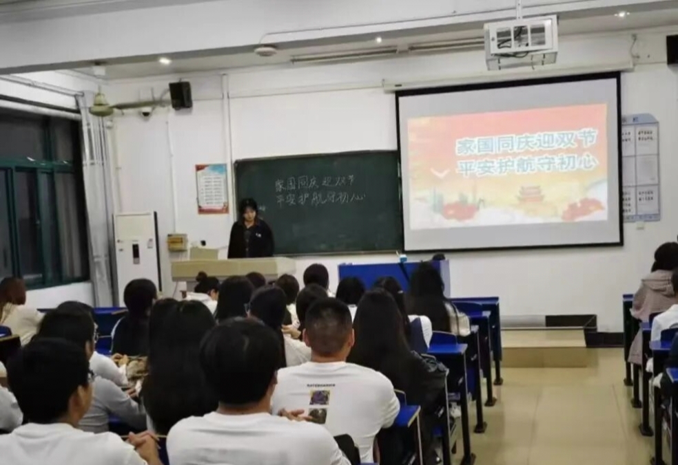 国庆与中秋双节来临之际,为引导学生体悟双节文化内涵、厚植爱国情怀,同时织密假期安全防护网,确保同学们度过平安且有意义的假期,人文学院组织各班级开展了“家国同庆迎双节,平安护航守初心”主题班会,助力学生在感受节日氛围的同时,强化安全防护意识,守护假期安全。