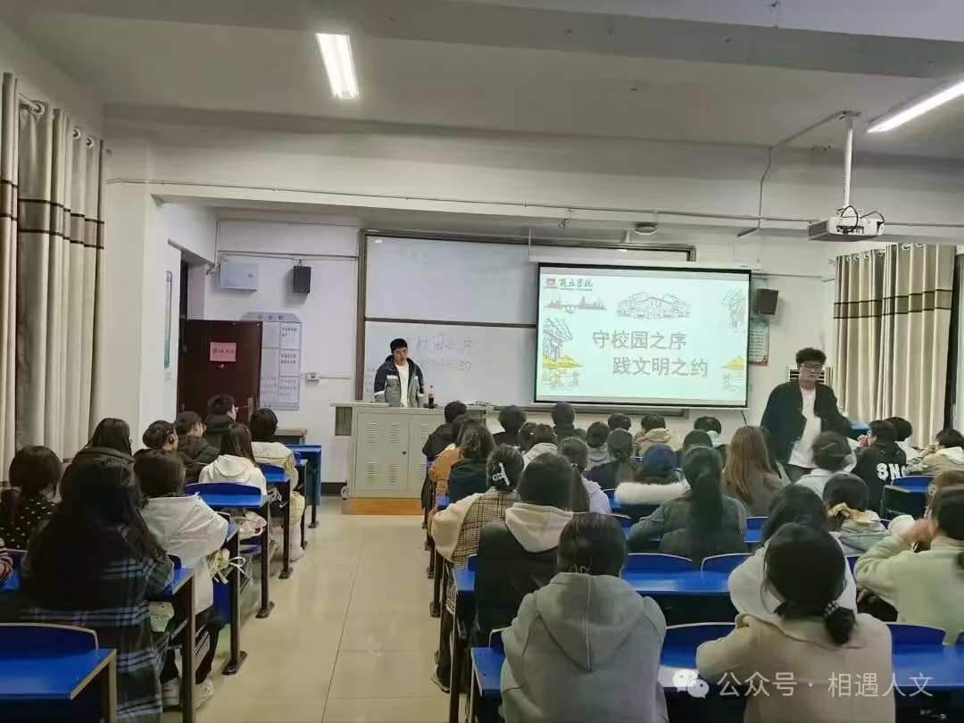 为引导学生树立文明意识、规范日常行为举止,营造有序和谐的校园环境,本周日,人文学院组织各班级开展“守校园之序,践文明之约”主题班会,助力学生在学习互动中筑牢文明理念,为校园文明建设注入青春动能。