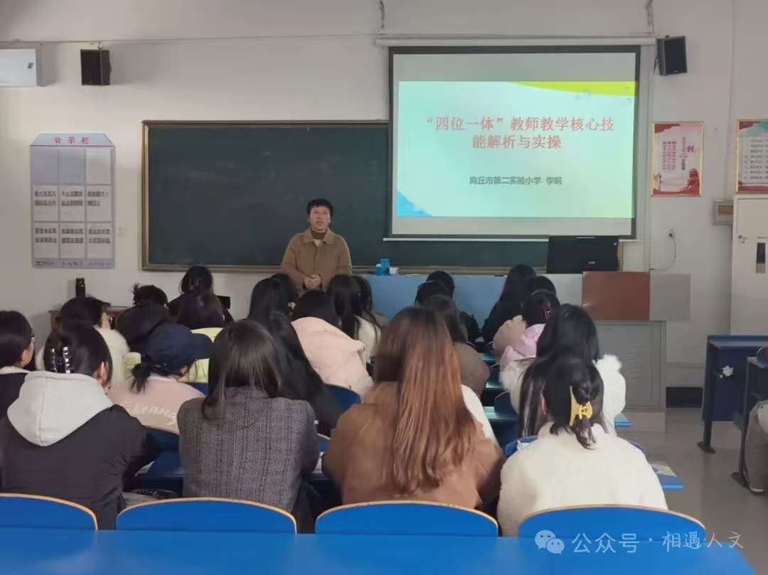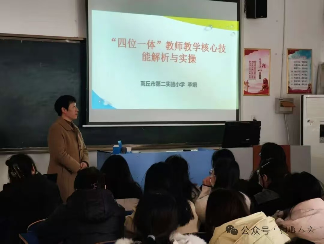 为深化课堂教学改革,提升学生综合素养与专业能力,我校特邀商丘市第二实验小学教师李娟在人文学院403室成功举办了一场以“ ‘四位一体’教师教学核心技能解析与实操”为主题的专业讲座。本次讲座旨在帮助该学院学前教育及小学教育学生系统梳理教学设计、说课、微型课及微课四大核心技能,实现从理论到实践的跨越。