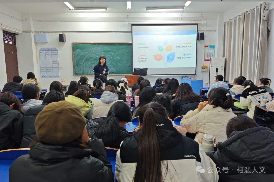 11月27日下午,老主楼404教室内座无虚席,商丘市梁园区教育发展中心李曼老师带来“大学生心理创设与成长规划”系列讲座首场分享。本次讲座聚焦心理调适与生涯规划两大核心板块,为入学不久的大学生们送上了一份实用的成长指南。