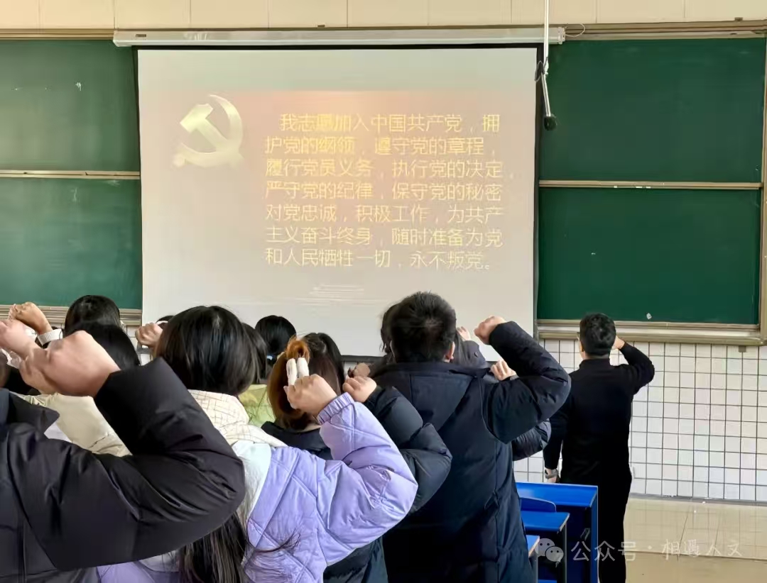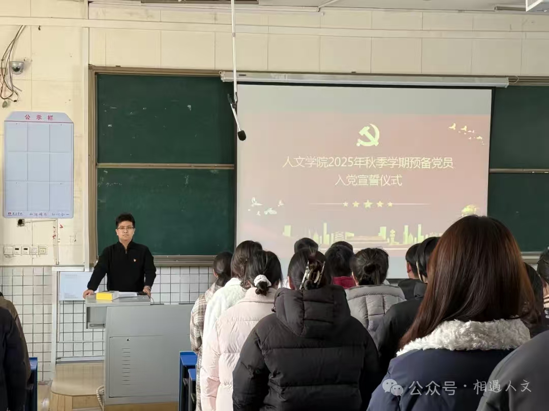 仪式在庄严的国歌中拉开序幕,李欣萌宣读《人文学院2025年秋季学期新接收预备党员名单》。随后在领誓人李欣萌的带领下,全体党员神情肃穆、目光坚定,高举右拳,庄严宣誓。“我志愿加入中国共产党……”誓言声声,字字千钧,这是对党和人民作出的郑重承诺,必将激励着全体党员在新征程中砥砺前行、奋发有为。