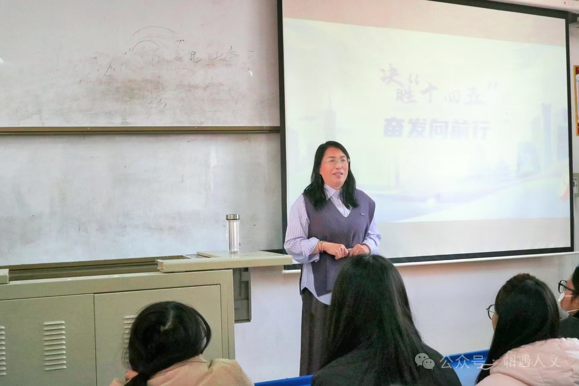 2025年12月6日下午,商丘学院老主楼302教室座无虚席,气氛热烈。人文学院特邀商丘师范学院教授,李铁博士带来“决胜‘十四五',奋发向前行”专题报告,同学们认真聆听了这场兼具理论深度与实践温度的思想盛宴。