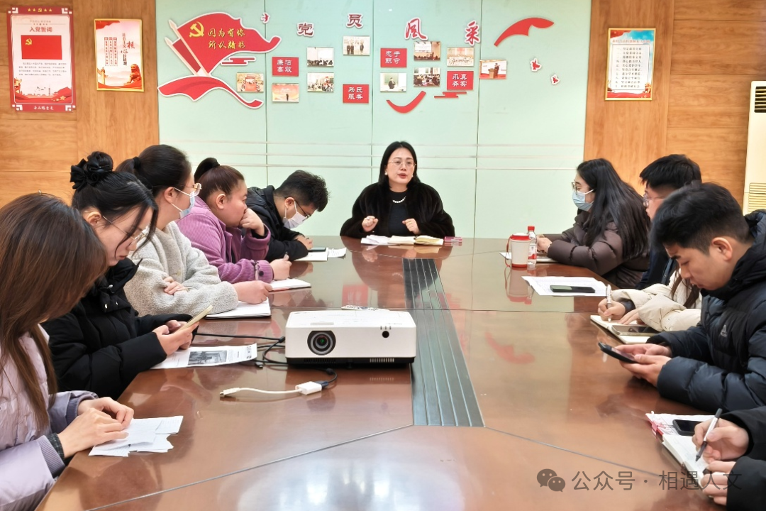 2025年12月19日,人文学院在老主楼二楼会议室召开学生日常管理工作专题会议,重点部署期末阶段学生安全稳定与防诈骗专项工作。会议由学院党总支书记曹婕主持,全体辅导员参加会议。