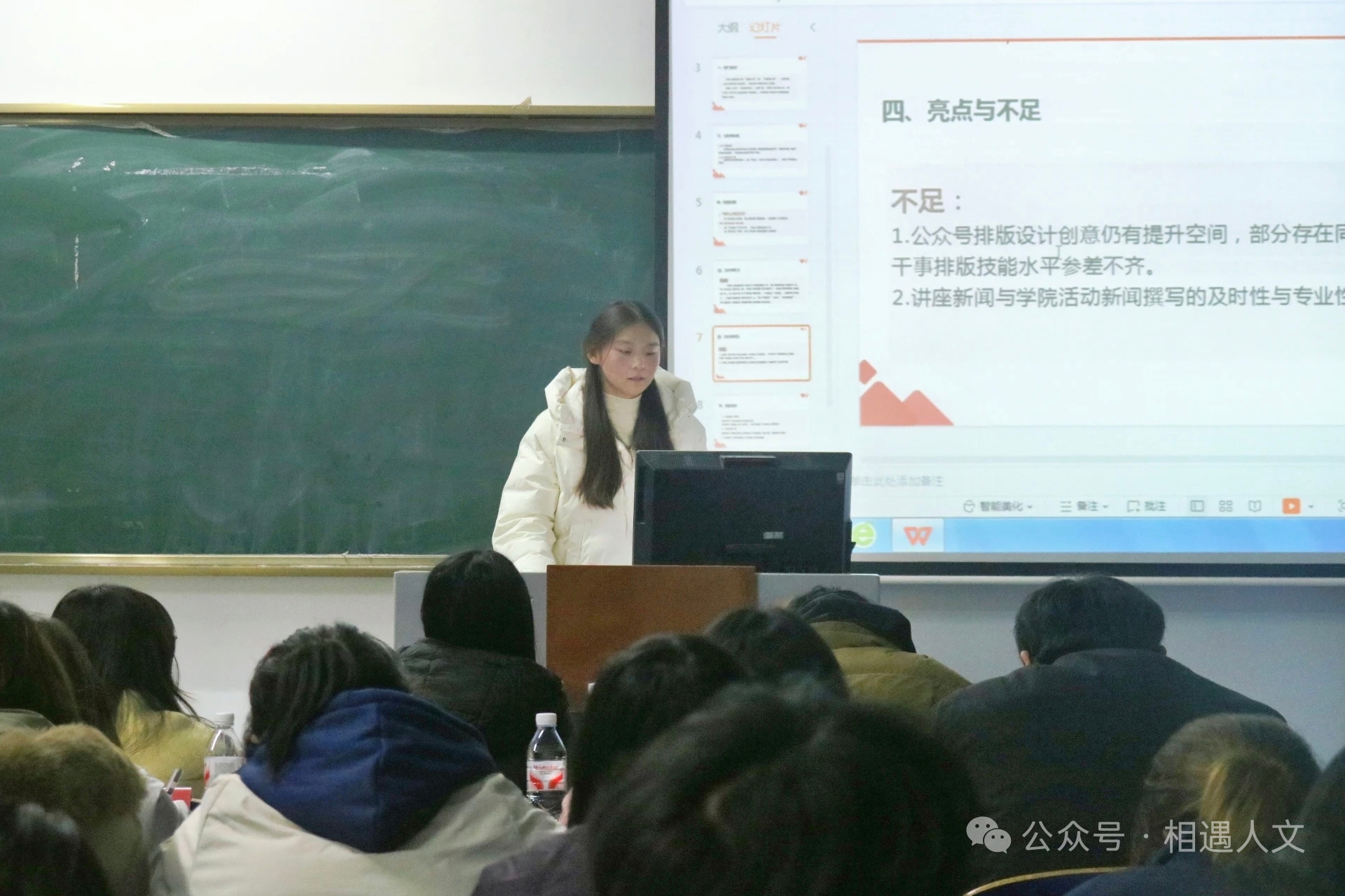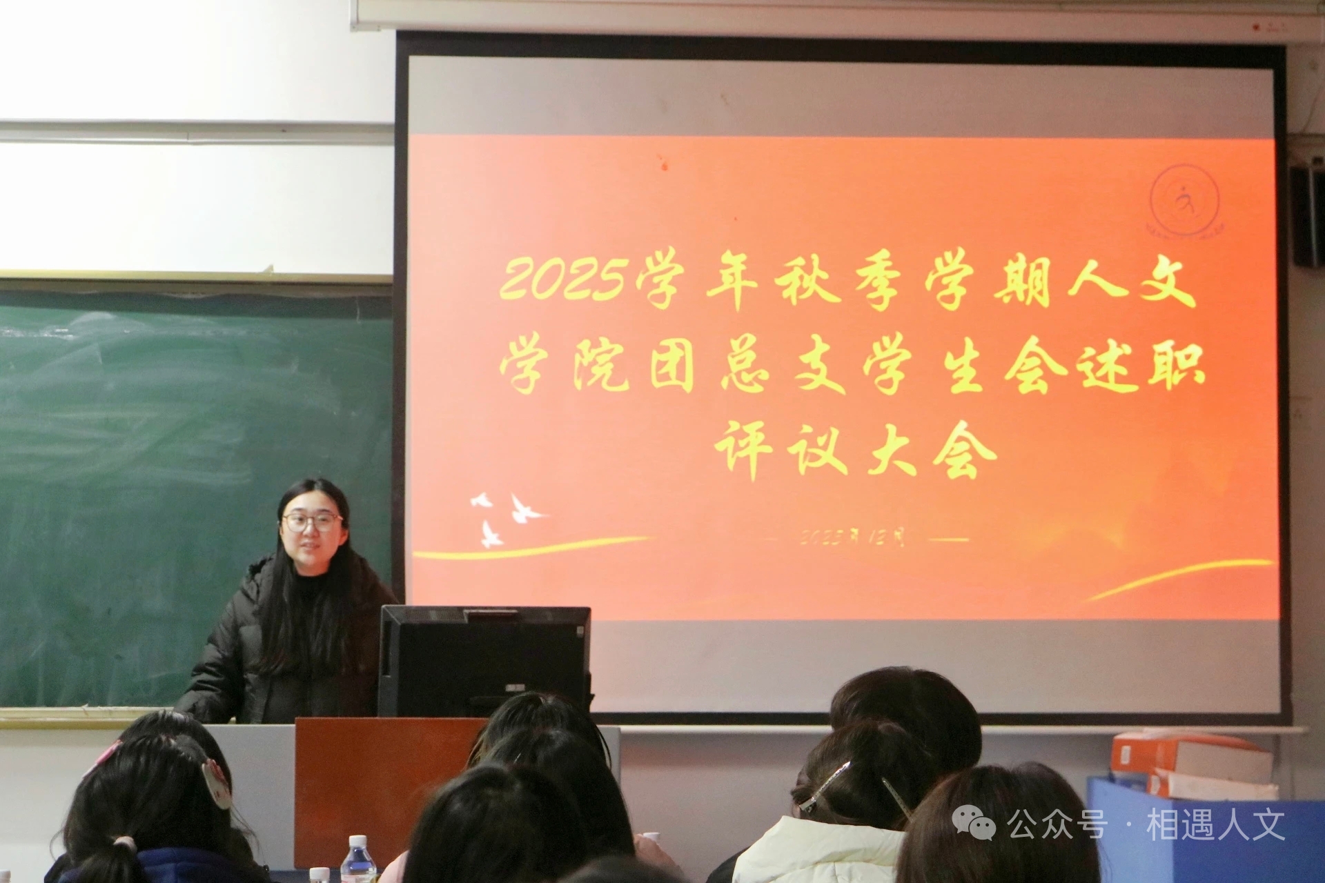此次述职评议大会既是对秋季学期工作的全面复盘与总结,也是凝心聚力、砥砺前行的动员大会。未来,人文学院全体学生干部将秉持服务初心,以更饱满的热情、更扎实的举措开展学生服务工作,为学院学生工作发展注入青春活力,以青年的智慧与力量助力学院建设。