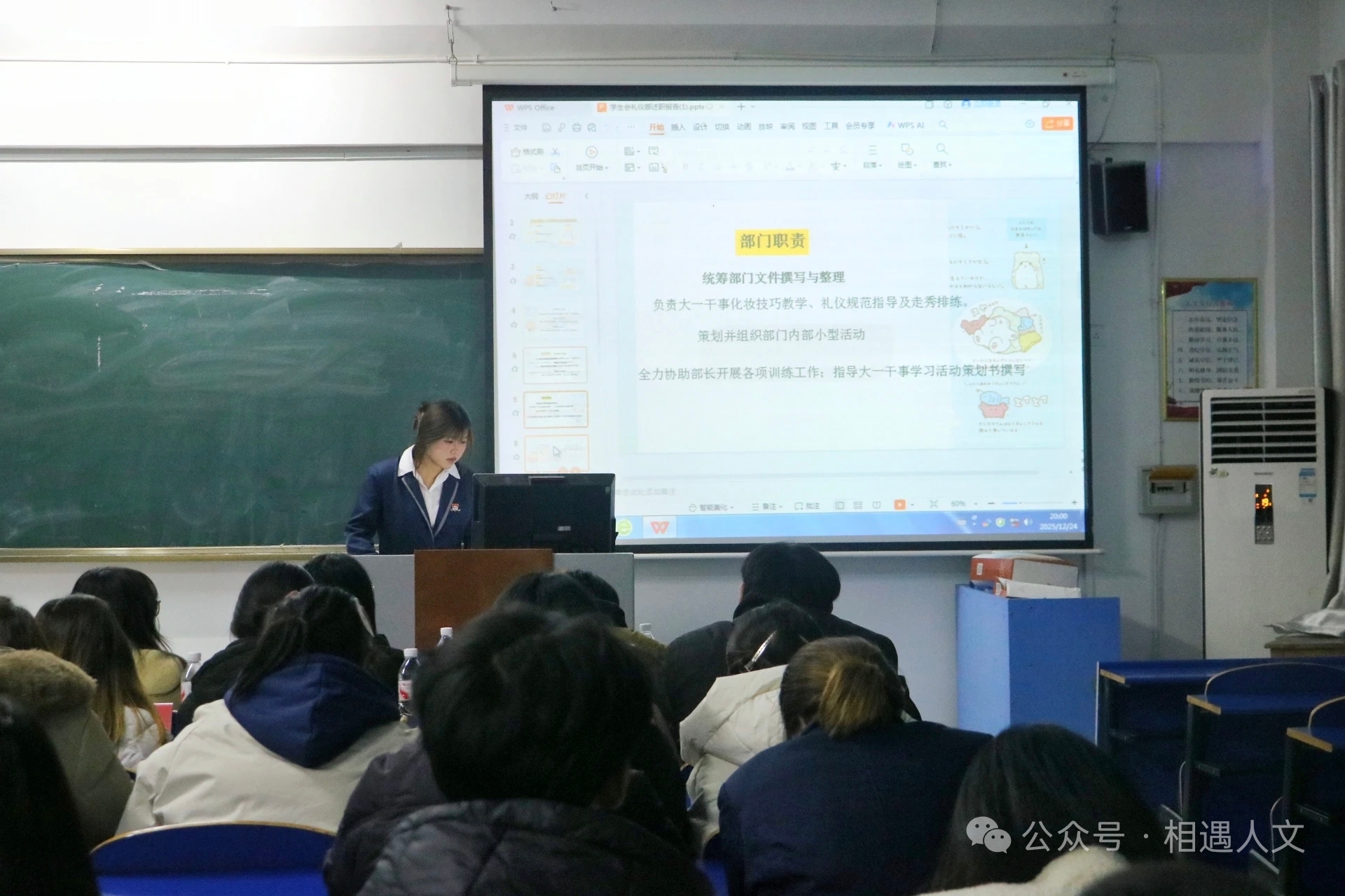 为总结本学期团总支学生会工作成果、明晰未来发展方向、进一步提升学生组织服务效能,2025年12月24日,人文学院召开2025学年秋季学期人文学院团总支学生会述职评议大会。由人文学院团总支书记徐冉老师主持会议,团总支学生会全体学生干部参与。