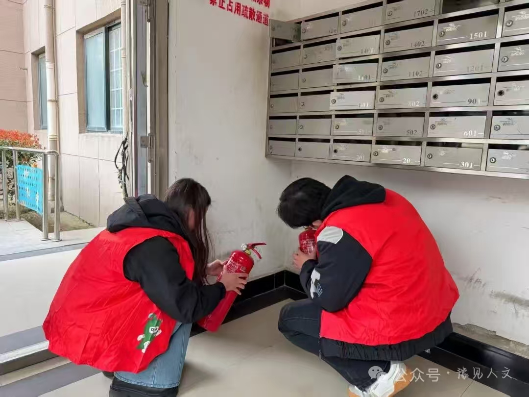 活动中,志愿者们深入社区各楼栋,进行全面细致的消防隐患排查。大家严格对照消防安全检查标准,重点检查楼道杂物堆放、消防通道堵塞及消防设施完好情况,对排查出的各类安全隐患逐一登记,并协助居民清理楼道易燃杂物,以实际行动打通社区“生命通道”。活动结束后,志愿者们合影留念,用镜头记录下志愿服务的温暖瞬间。