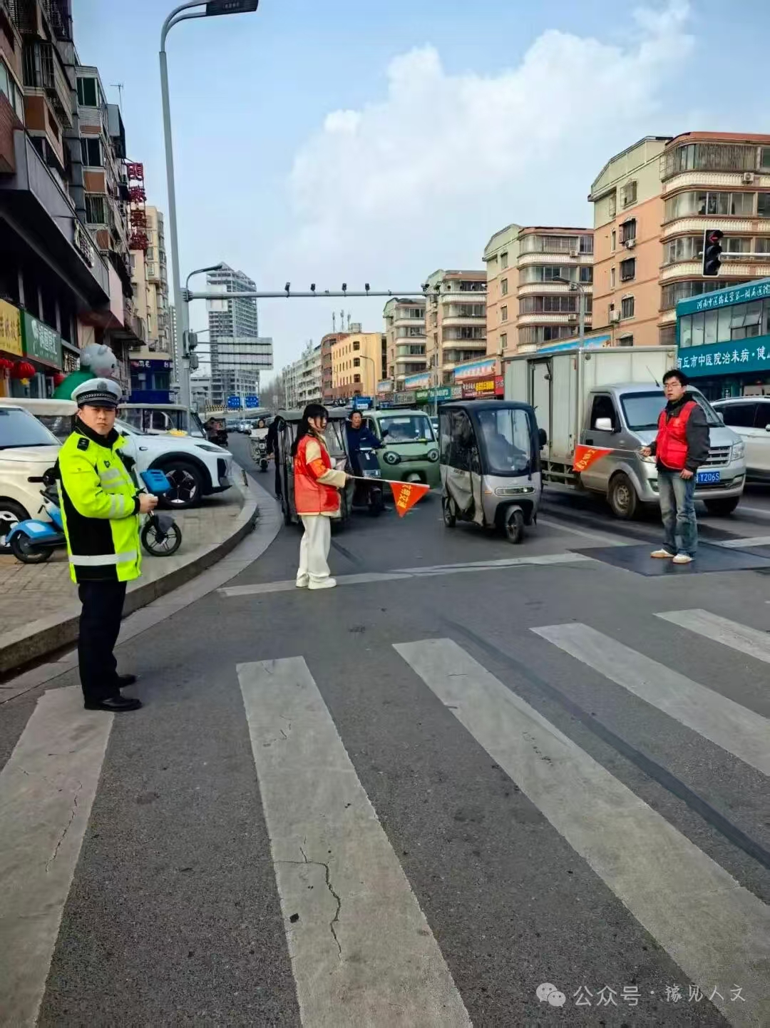 走出社区,实践团成员来到社区周边主要交通路口,积极参与城市交通文明建设。大家身着红马甲、手持引导旗,协助交警维护路口秩序,耐心劝导行人和非机动车规范通行,用文明语言与标准手势守护道路安全,成为街头一道温暖而醒目的志愿风景。