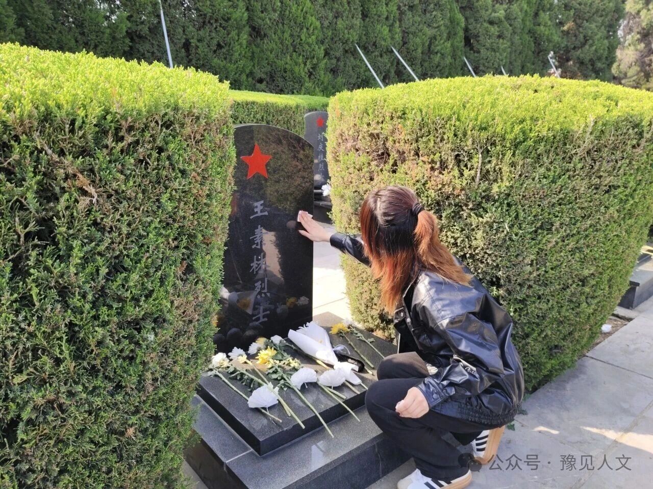 仪式结束后,志愿者们有序开展后续祭扫活动。在烈士墓区,大家仔细擦拭烈士墓碑、清扫周边环境,为长眠的革命英烈守护一方洁净肃穆的安息之地。在“九指虎”李德合烈士、见义勇为英雄李学生等先烈的墓碑前,志愿者们手持白花依次敬献,静静聆听讲解员讲述先烈们浴血奋战、舍生取义的英勇事迹。一段段峥嵘往事,一个个感人至深的故事,让在场志愿者深受震撼、倍感动容,仿佛置身于那段风雨如磐的峥嵘岁月。