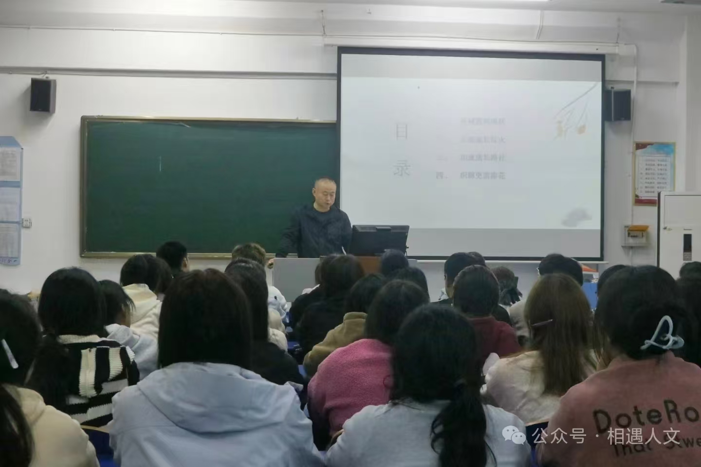 2025年10月17日下午,人文学院老主楼404教室,2025级汉语言文学专业的大一新生兴致勃勃地聆听了一场别开生面的讲座。讲座的主题是“县域青年教师专业发展成长路径”,由全国模范教师、太康一高高一北清部主任张龙天老师主讲。