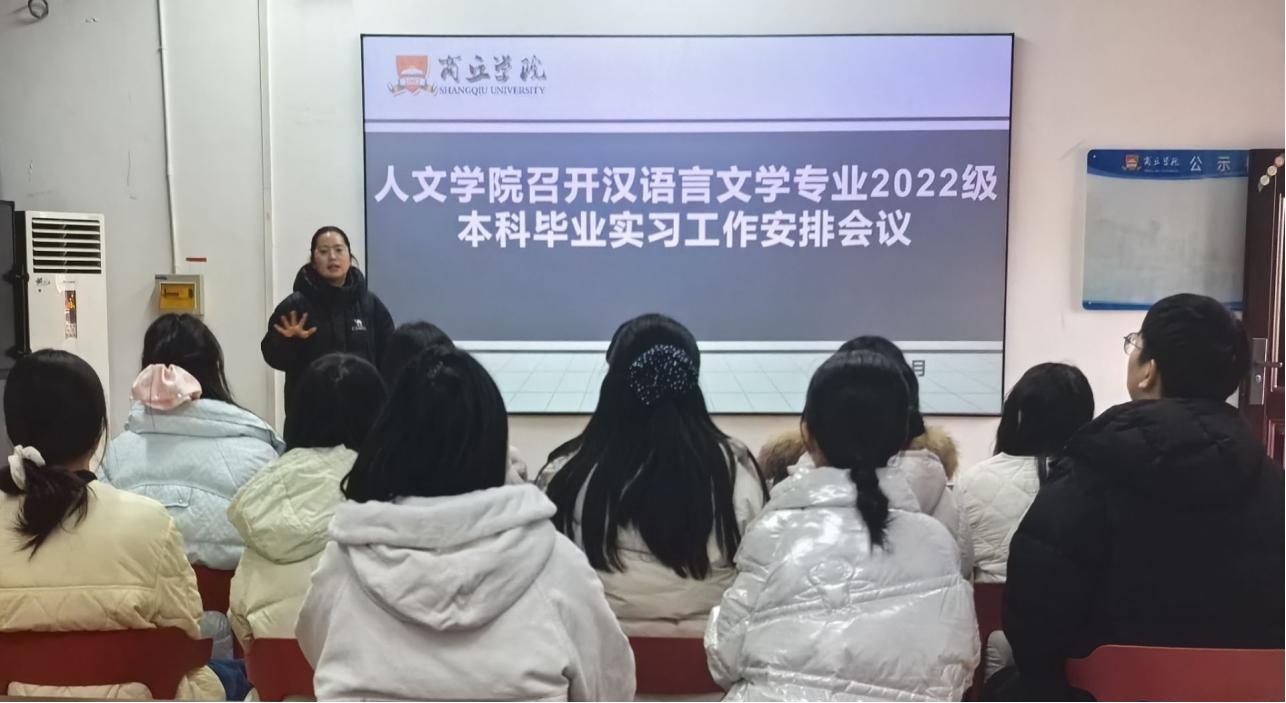 为做好汉语言文学(师范)本科专业毕业实习相关工作,人文学院于2025年11月19日下午在四号楼302教室举办了毕业实习工作交流会。此次交流会由文学教研室胡贝贝老师主持,汉语言文学专业教师参加了会议。