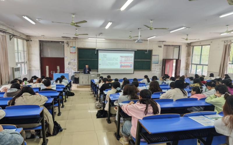 宣讲会上,贾敏老师和全体参会学生首先对王晶教授的莅临表示热烈欢迎,同时简要介绍了本次宣讲会的目的和流程。活动现场,王晶教授就河南科技学院教育科学学院的研究生招生专业设置、报考流程、培养模式及毕业生发展前景等方面作了全面、详细且实用的讲解。他特别强调了涵盖全国统考科目、业务课以及复试等考研科目所对应的参考书目,为有考研意向的学子提供备考书籍方面的指导。王晶教授讲解通俗易懂、条理清晰,深受参会师生好评。