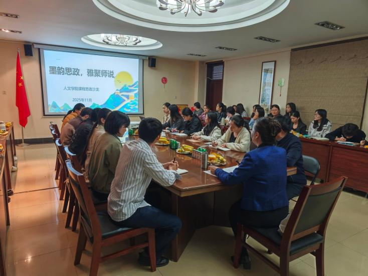 为深化课程思政建设,推动专业教育与思政教育同向同行,2025年11月10日,人文学院在会议室举办“墨韵思政,雅聚师说”主题沙龙活动。学院党政班子成员、各系主任及教师代表参加活动。