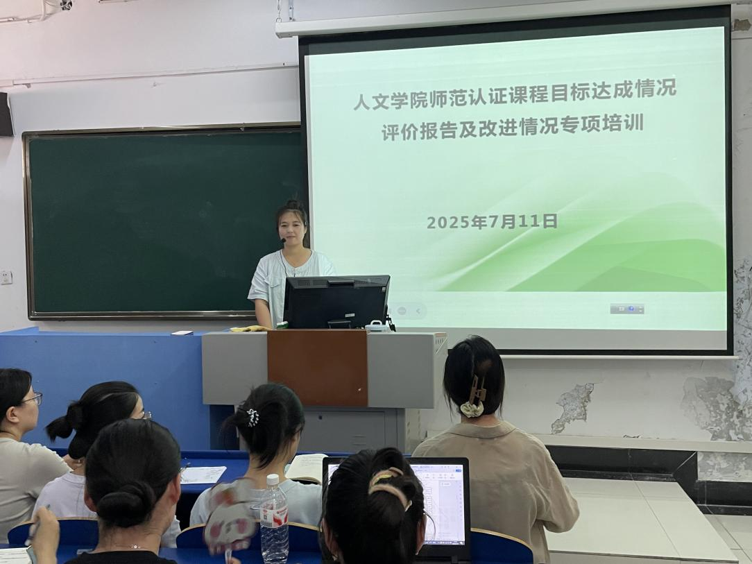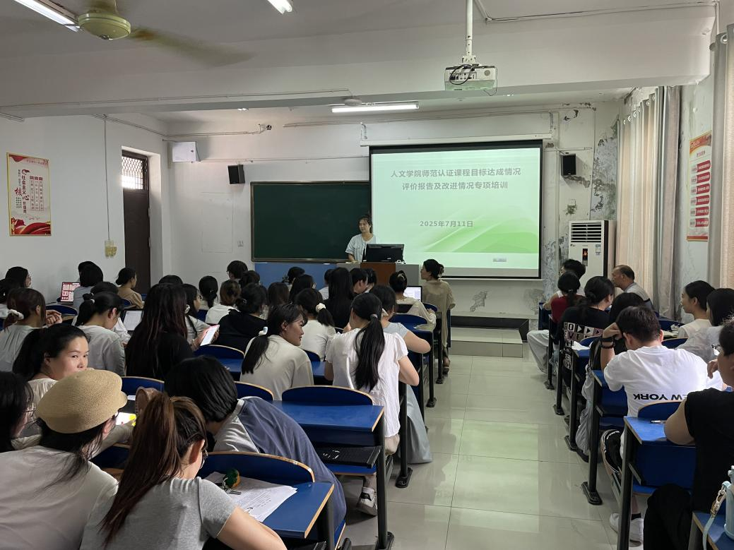 为进一步深化师范教育改革,全面提升师范类专业人才培养质量,确保师范认证工作扎实推进,7月11日下午人文学院在老主楼408室精心组织开展了师范认证课程目标达成情况评价报告及改进情况专项培训活动。学院领导、骨干教师及相关教学管理人员积极参与了此次培训。