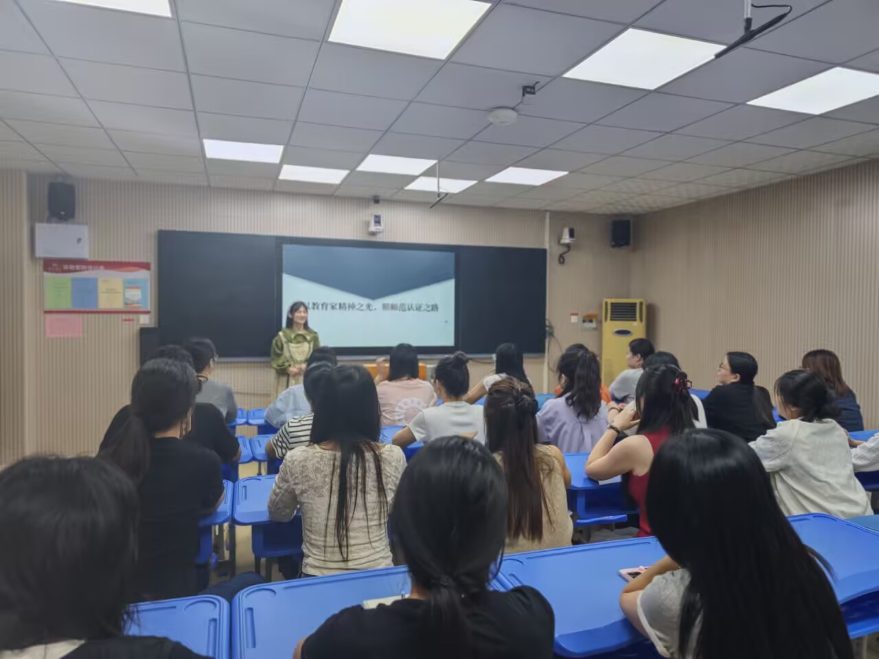 为深入贯彻落实师范专业认证理念,推动专业建设与人才培养质量对标认证标准,近日,学前教育教研室开展了师范专业认证专题培训。本次培训以“锚定认证目标,践行教育家精神”为主题,教研室全体教师及部分学生代表参会,为专业迎接师范专业认证筑牢思想与实践基础。