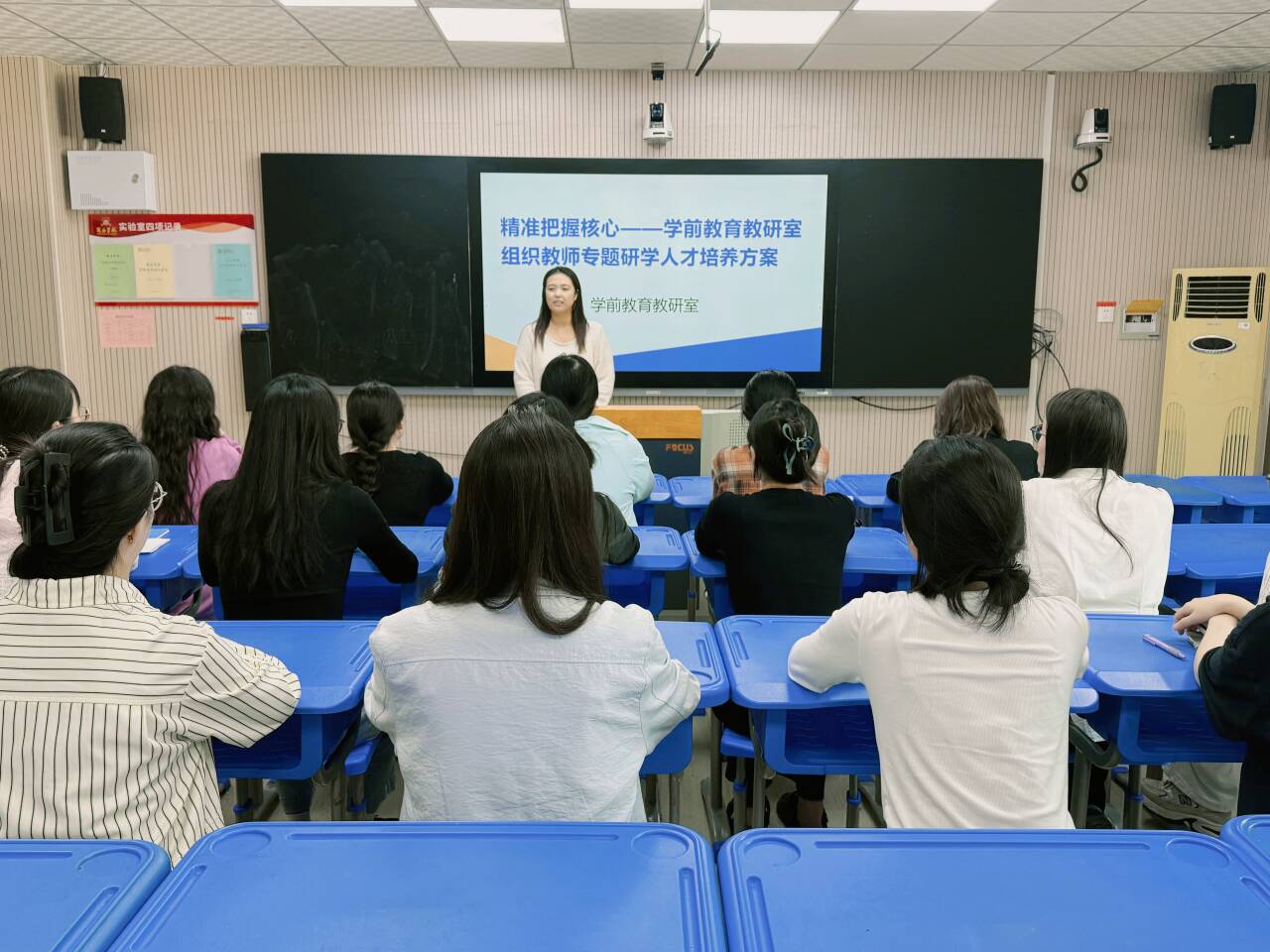 为进一步明晰学前教育专业育人方向,确保人才培养方案落地见效,近日,学前教育教研室围绕《2023版学前教育专业人才培养方案(2025修订版)》,组织全体教师开展专题研学活动,通过“解读+研讨+实操”三维模式,精准锚定培养核心,为后续教学实施筑牢基础。