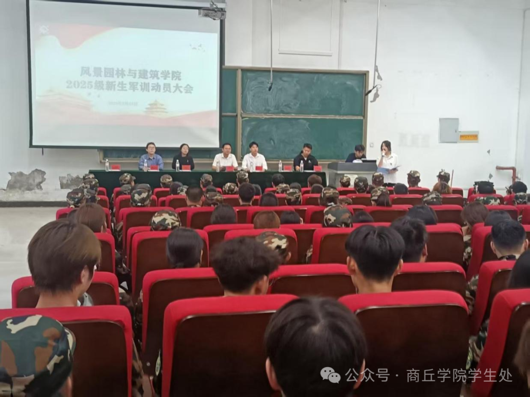 大会圆满落幕,全体新生整装待发,将以昂扬斗志投入为期14天的军训。 风景园林与建筑学院 9月12日上午,为增强新生国防意识、锤炼意志,风景园林与建筑学院在阶梯32举行2025级新生军训动员大会,学院党总支副书记王百田、教官代表刘秀文、新生辅导员及全体新生参会。