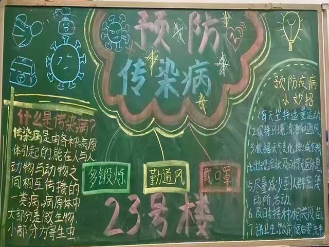 此外,本次活动还充分发挥了公寓黑板报的宣传阵地作用。各楼宇精心策划、制作了一期期主题鲜明、内容详实的预防传染病专题板报。板报以通俗易懂的语言和生动形象的插图,重点突出了勤洗手、常通风、合理膳食、加强锻炼等核心防病知识,在公寓公共区域形成了有效的视觉宣传,进一步营造了“人人关注健康、人人参与预防”的浓厚氛围。