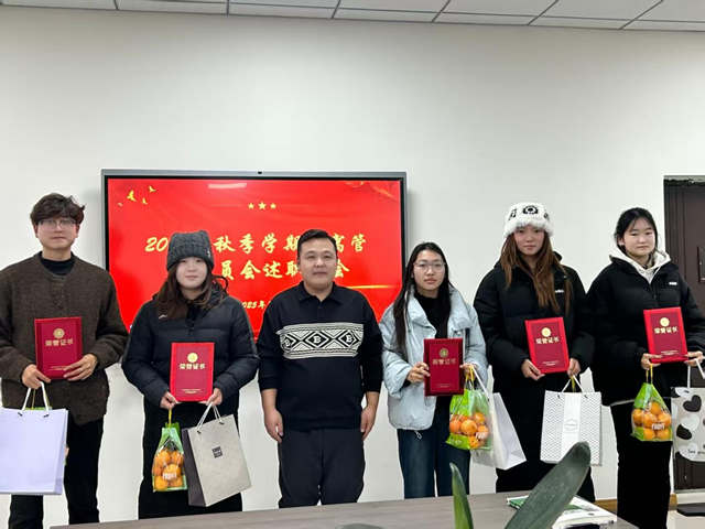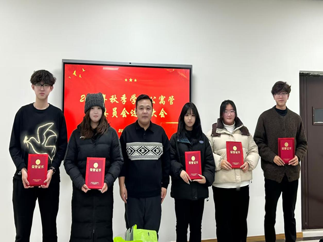 经过评委们认真公正的打分评议,最终,公寓管理委员办公室、生活一部、生活二部、文明督察部、外宣推广部凭借出色的工作表现脱颖而出,被评为2025年秋季学期“先进部门”;许依婷、陆思炎、李雨燕、冯煜红、任思宇五位同学因在工作中表现突出、服务热情周到,荣获2025年秋季学期“服务之星”称号。李帅为获奖单位和个人颁发奖品和证书并合影留念。