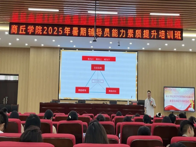 为深入学习贯彻全国教育大会精神,大力弘扬教育家精神,不断提高我校辅导员队伍的专业水平和职业能力,提升学生工作质量,落实立德树人根本任务。7月23日至24日,商丘学院举办2025年暑期辅导员能力素质提升培训班。党委副书记、副校长张再望,人事部部长孙宜杰,党委组织部部长马宁,教师发展中心副主任李博,各二级学院党总支书记、副书记出席培训会议,学务部工作人员及全校专职辅导员参加培训。