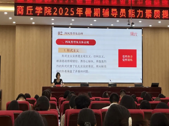 本次培训为期两天,聚焦“党风廉政”“师德师风”“心理健康”“突发事件应对”四大专题,邀请4位学生工作领域专家开展专题辅导和4位辅导员进行经验分享。