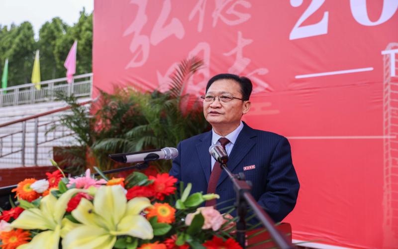 校长、党委副书记程印学在讲话中代表学校领导及全体师生员工对来自全国各地的2025级莘莘学子表示热烈欢迎和诚挚祝贺,向培育、支持同学们的家人、教师们致以崇高敬意,向全体承训教官表示诚挚谢意。