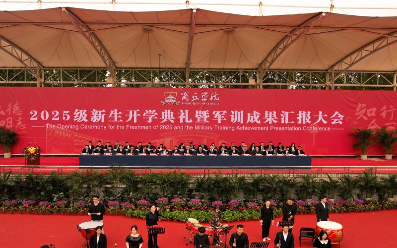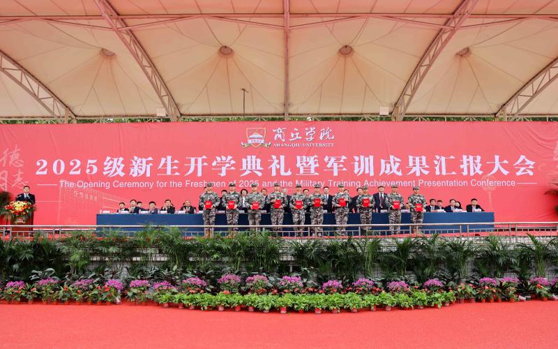 9月26日,商丘学院召开2025级新生开学典礼暨军训成果汇报大会。全体校领导出席会议,各二级学院院长、行政处室负责人及二级学院党总支书记、副书记,全体承训教官及全体2025级新生参加典礼。党委副书记、副校长张再望主持典礼。