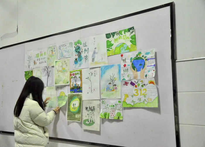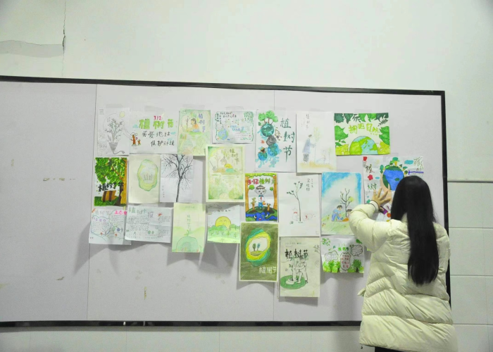 此次活动创作的植树节海报,以绿色环保为主题。学生们用他们真挚的热情、智慧的创意,传递积极向上的正能量,为保护环境贡献着自己的青春力量。