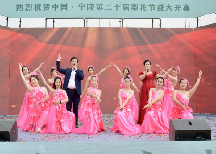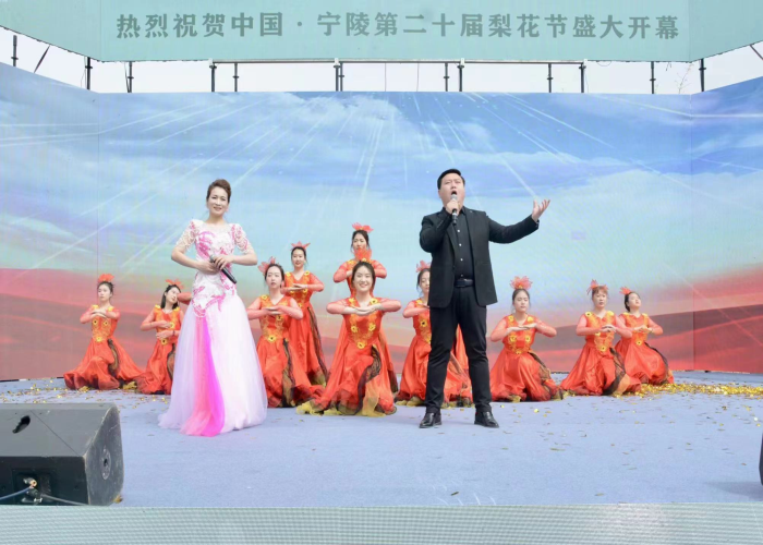 文艺表演在效森森、李素鹏老师演唱的《领航》中拉开帷幕,现代舞与歌曲元素有机融合,亮点纷呈,观众时时响起阵阵掌声。现场丰富多彩的节目以不同的方式赞美梨花,彰显了梨花不与群芳争艳,纯洁如雪,清新脱俗的品质。李晓丹、余彦沛老师演唱的《共筑中国梦》贯穿了宁陵县人民共同奋斗的梦想,回顾了勤劳致富和对家乡的赞美之情,表现了祖国人民对美好未来充满信心。