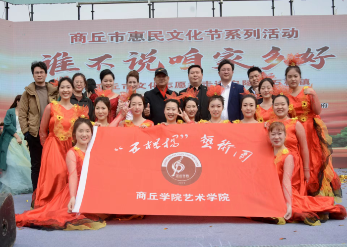 为大力宣传和推介宁陵大美梨城的文化旅游资源,展现当地风采,传播豫东文化。2023年3月23日,我院“五棵杨”艺术团受邀参加中国·宁陵第二十届梨花节演出活动。受邀参加活动人员为艺术学院副院长李晓丹,艺术团团长效森森、副团长秦港西、李朝政,余彦沛、李素鹏老师以及艺术学院部分学生代表。