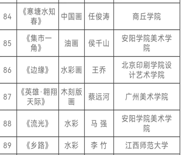 第三届全国高校美术教师教学实践优秀美术作品展”在全国投稿中,经(全国)教育书画协会高等美术教育分会组织专家评审,共有156幅(件)作品入选“第三届全国高校教师教学实践优秀美术作品展”。涵盖中国画、油画、版画、雕塑、水彩、工艺等美术种类。