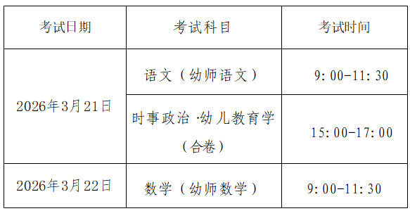 (2)教育类专业文化课考试科目及时间为: